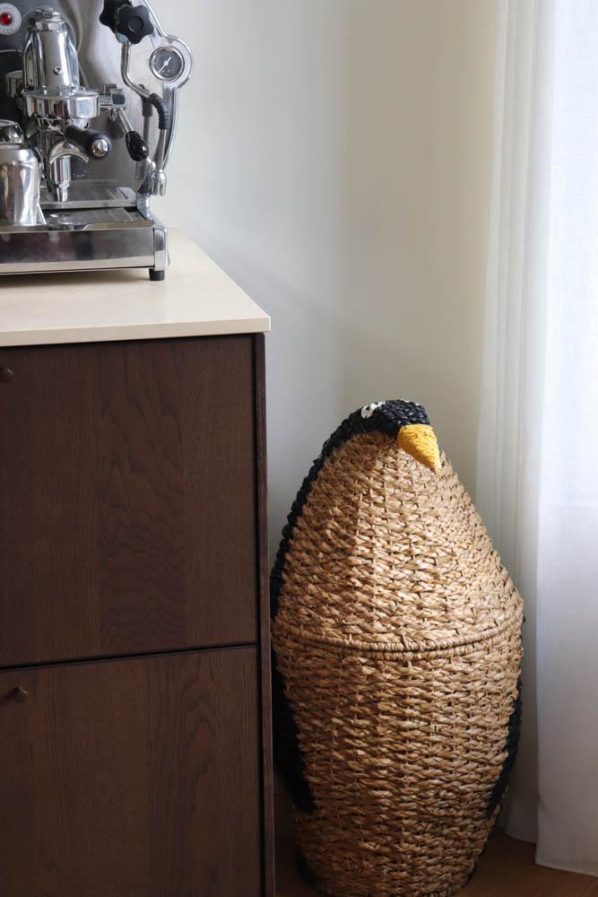 Tazia Kurven har fundet sin plads i det stilrene køkken hos @wilsholm. Den karakteristiske pingvin tilfører et legende udtryk, mens den gemmer legetøj og småting af vejen.