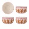 Binna Koppen fra Bloomingville er et sæt med 4 kopper i stentøj med rund form og en håndmalet overflade med præget struktur. Hver kop er dekoreret med gentagne peberkagefigurer og et rødt hjertemotiv ved randen. Små variationer i farvens intensitet kan forekomme, hvilket gør hver kop unik.