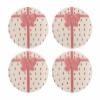 Bowie Puden fra Bloomingville er en pude i beige vævet bomuld med røde prikker, designet til at ligne en indpakket gave med en rosafarvet veloursløjfe. Den er OEKO-TEX®-certificeret og leveres med en aftagelig inderpude.