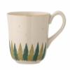 Spruce Kruset fra Bloomingville er perfekt til hyggelige te- og kaffestunder. Kruset er lavet af stentøj, har en klassisk form og er dekoreret med et smukt motiv af grantræer og gyldne stjerner med en flot gul nuance som baggrund. Den guldmalede kant giver et elegant udtryk til kruset.