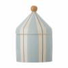 Cimmi Krukke m/Låg fra Bloomingville MINI er lavet af stentøj og har et håndmalet, stribet mønster i rosa og lyse toner. Låget med den lille knop fuldender det bløde og grafiske udtryk. Variationer i farveintensitet kan forekomme, hvilket gør hver krukke unik. Krukken kan bruges til opbevaring eller som en stemningsfuld dekoration.