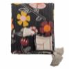 The Vivielle Throw by Bloomingville is a woven cotton piece featuring a printed floral design on one side. It has a beige base with accents in mustard, rose, and burnt orange. The textured surface adds depth, while chunky fringe in matching tones finishes the design with a subtle touch.