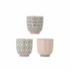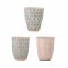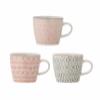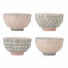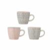 The Cécile Espresso Cup with Saucer by Bloomingville is a stoneware set of four featuring a decal print with painted details. Each piece displays varied patterns in soft rose, grey, and black tones for a balanced visual impression.