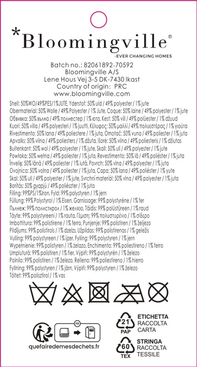 | Composition | 100% Wool, Filling: 100% PES |